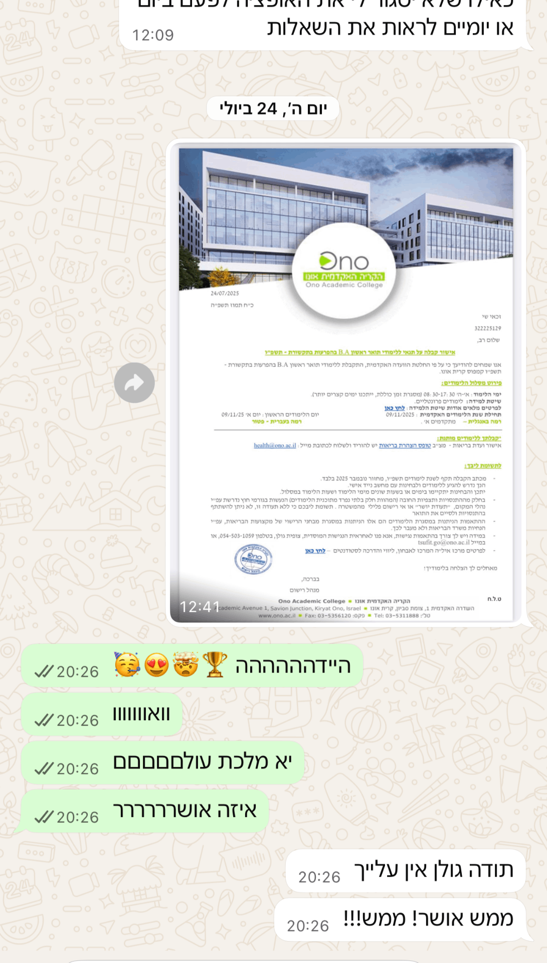 זה שינה לי את המסלול לגמרי אבל בזכות הציונים הגבוהים שכבר השגתי – אוניברסיטת