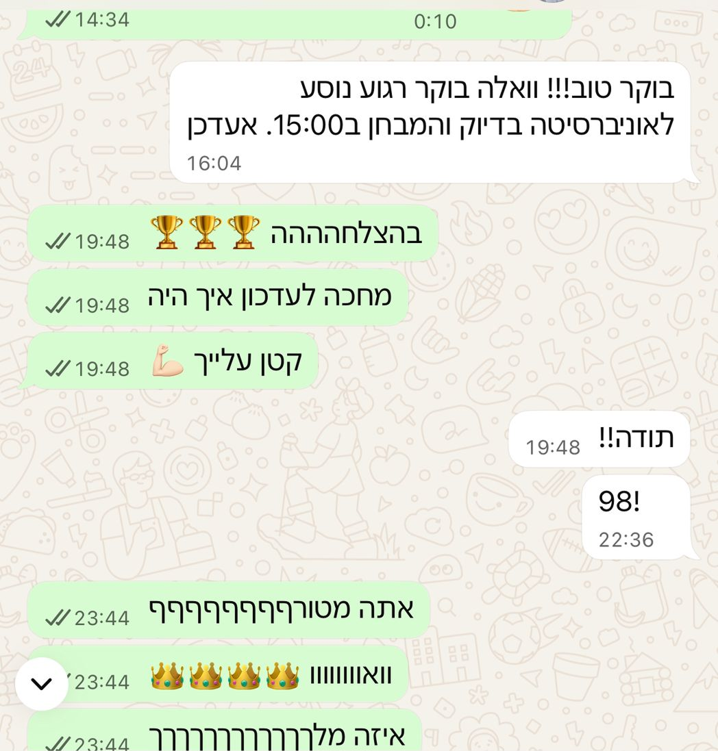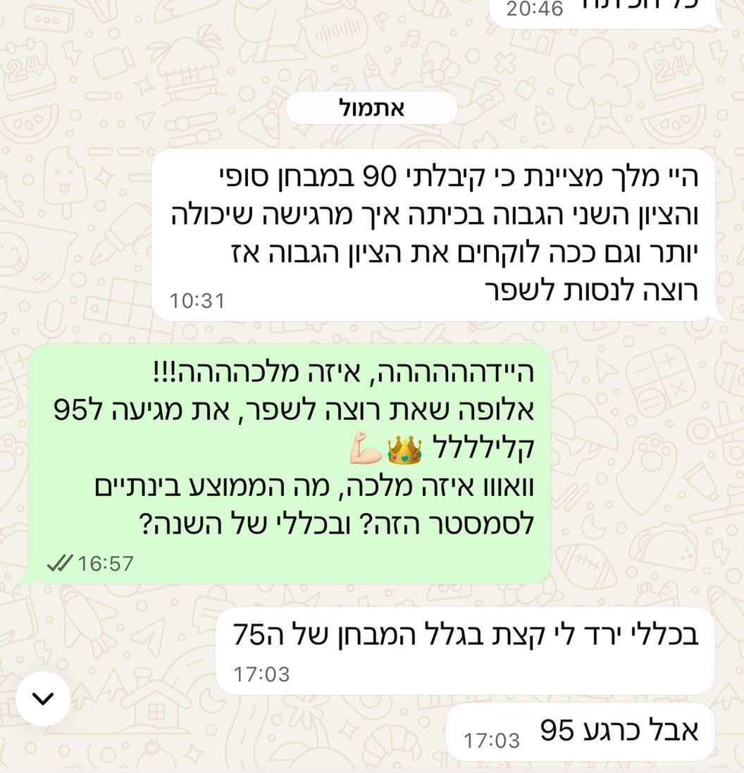 אני עובד עם סטודנטים לרפואה, להנדסה, לחשבונאות, למשפטים – כל אחד מביא את הסמסטר שלו, ואני מתאים את השיטה אליו.