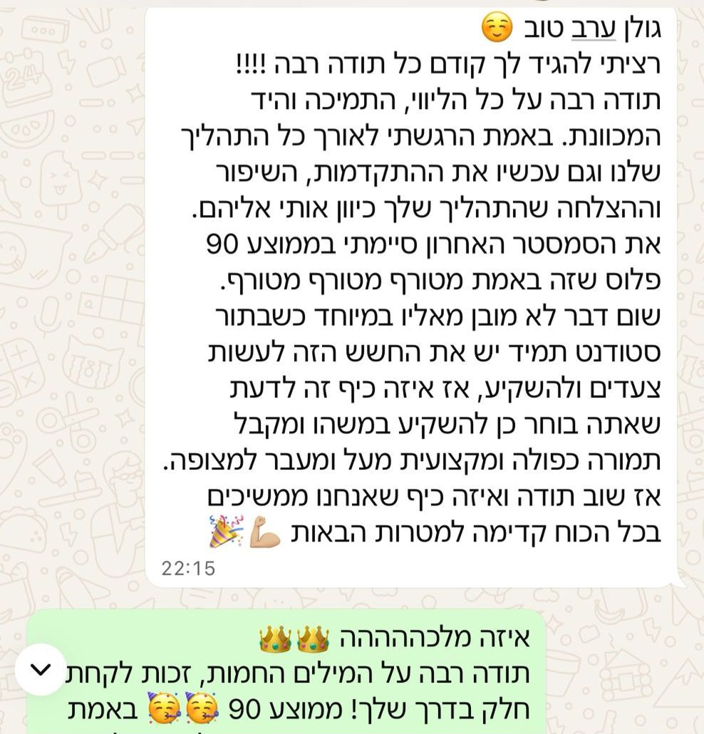 עשרות סטודנטים שעברו איתי תהליך, הפכו את הכישלון שלהם לסיפור הצלחה.